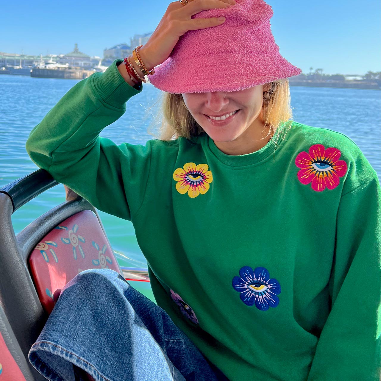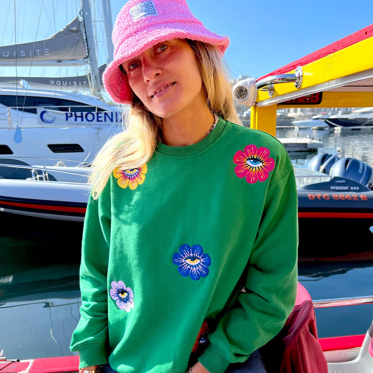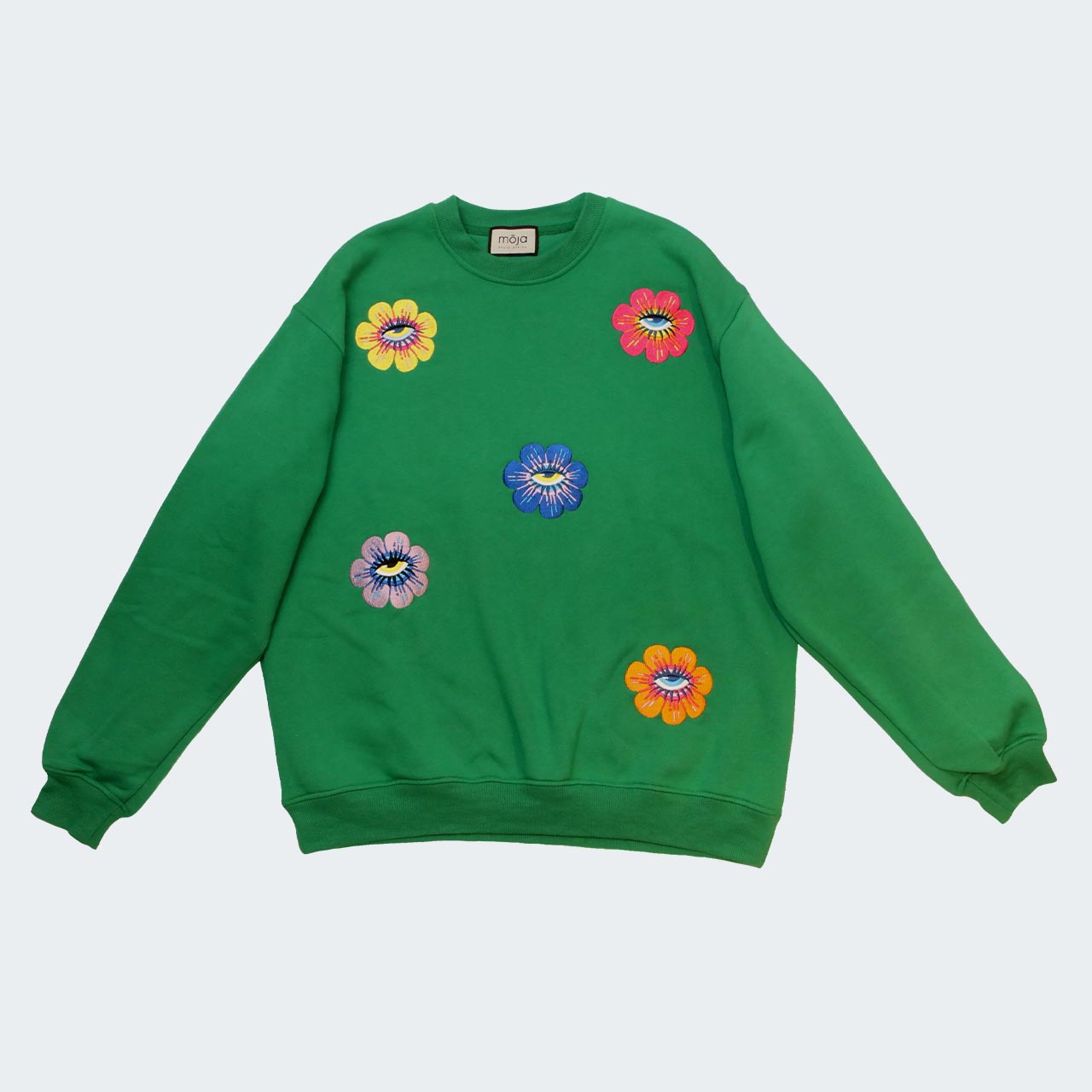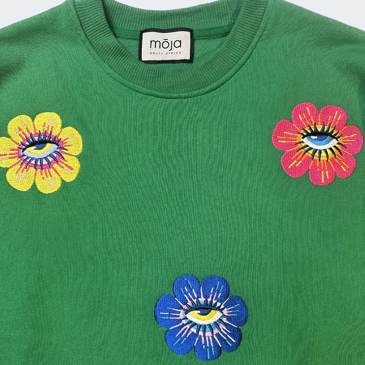The ready-to-wear sweatshirt has everything you need, both in style and comfort. This jersey sweatshirt is defined by a vibrant embroidered design. The flower eyes bring playfulness to this jersey. The artwork by South African based illustrator, Ksenia Sadovnik, adds an arty touch inspired by beauty and magic of nature.