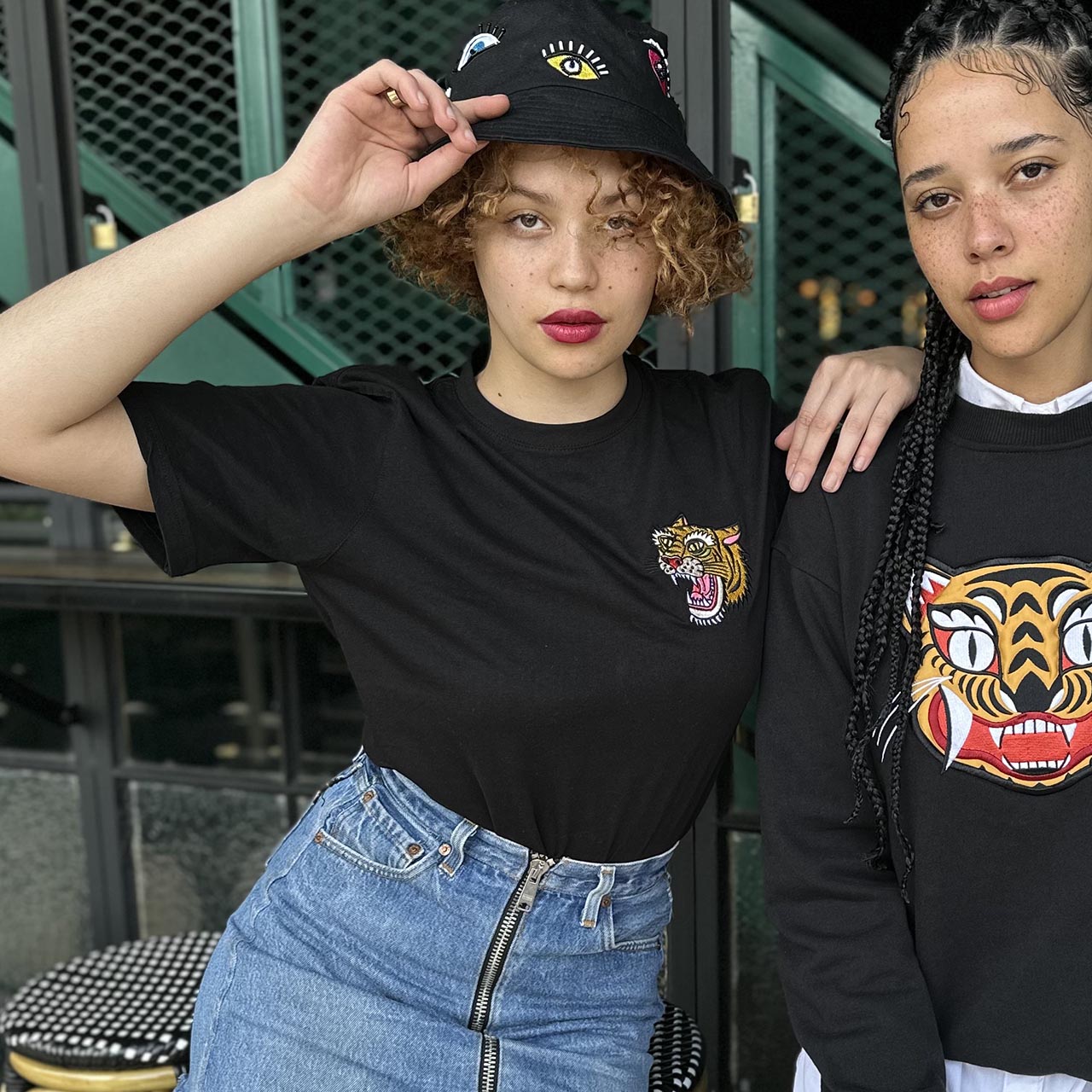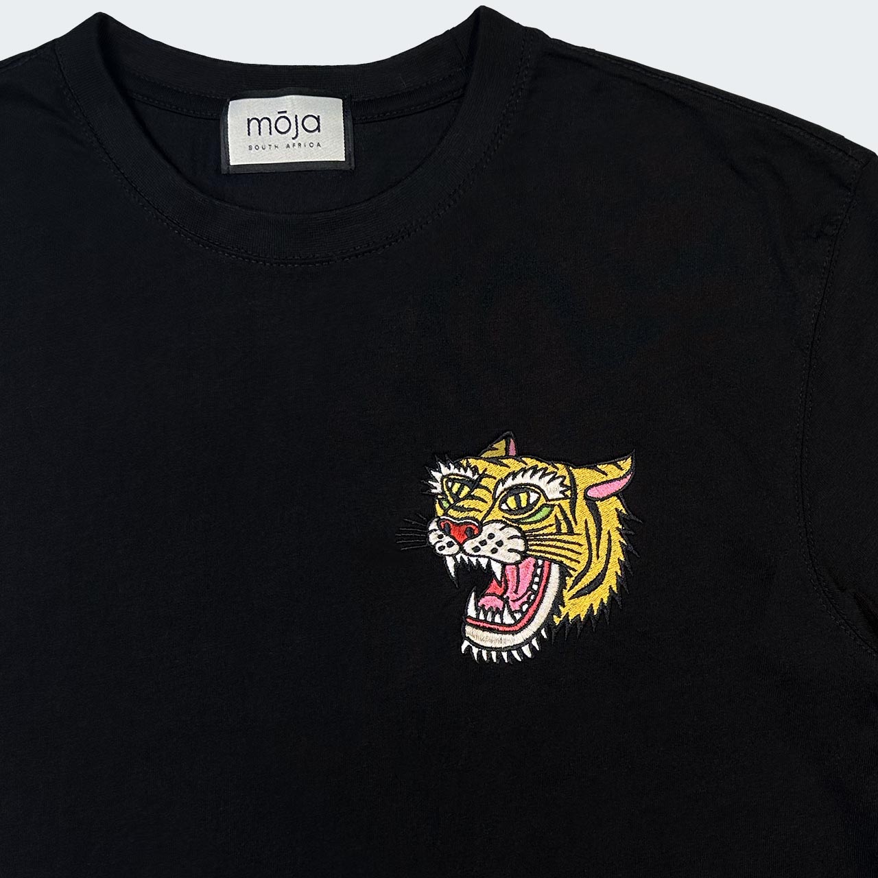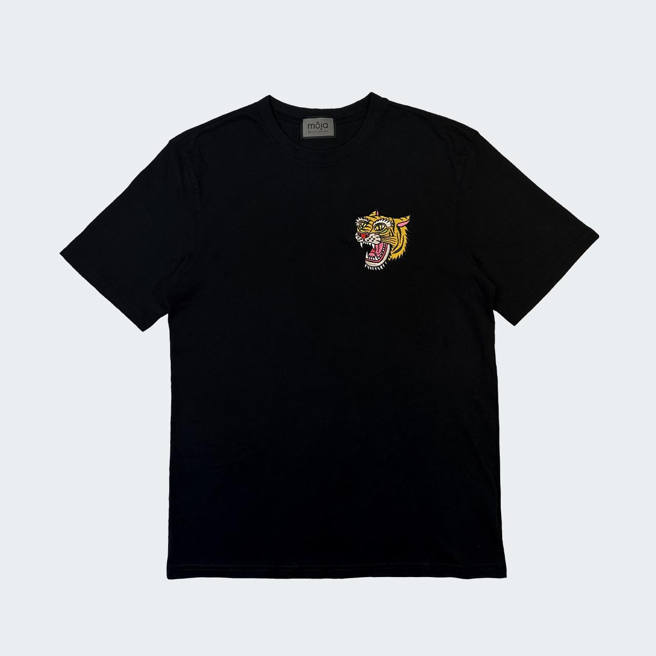 Stretch cotton T-shirt featuring a round neck and short sleeves. This cotton T-shirt is defined by the embroidered roaring tiger on the front.