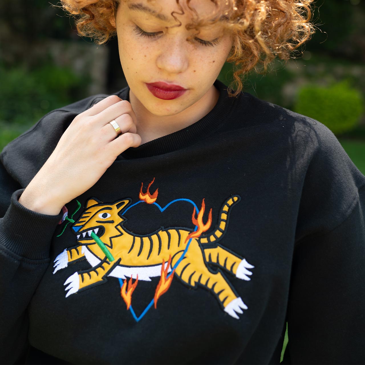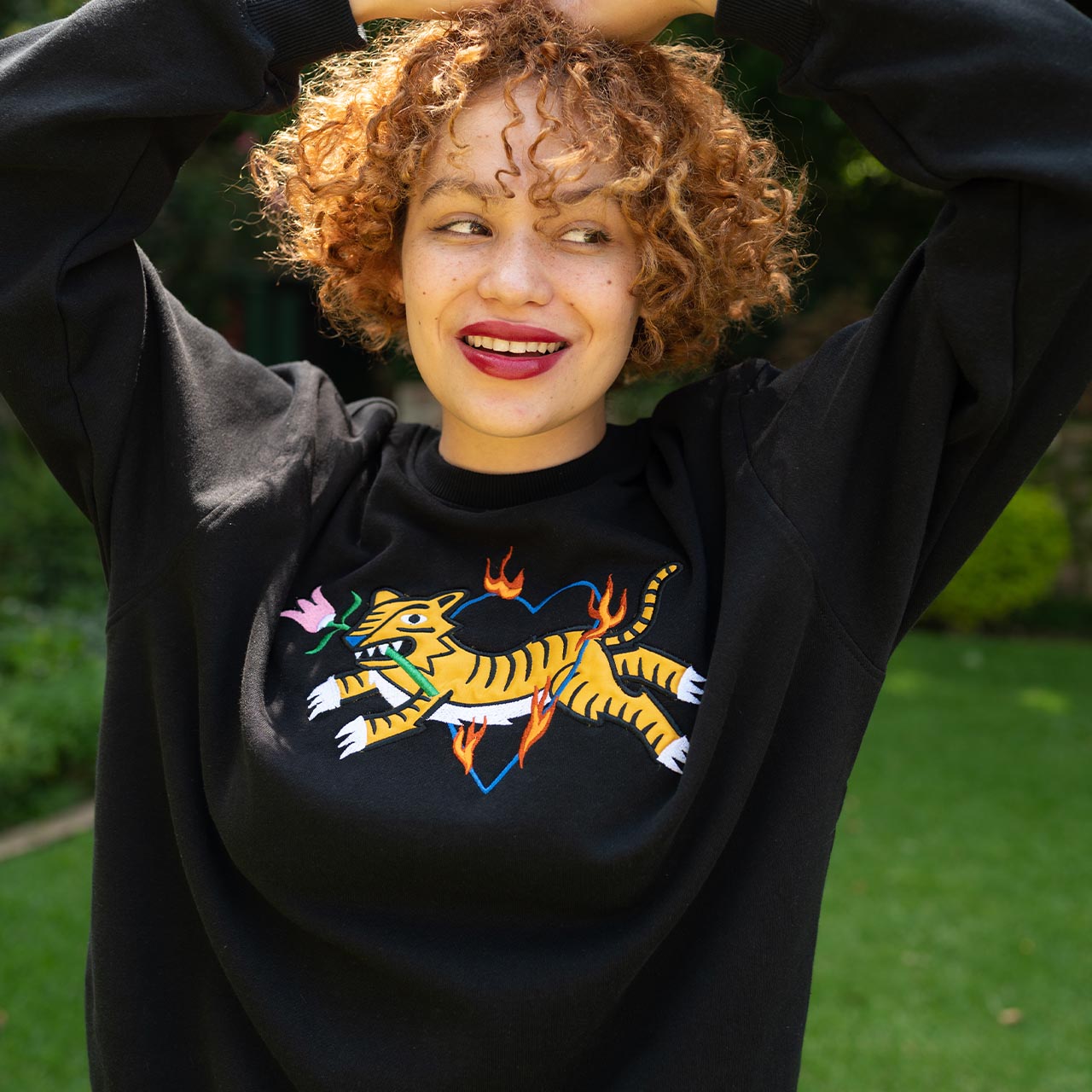 Ready-to-wear sweatshirt has everything you need, both in style and comfort. This jersey sweatshirt is defined by vibrant embroidered design. The artwork by South African based illustrator, Ksenia Sadovnik, adds an arty touch to it inspired by beauty and magic of nature.